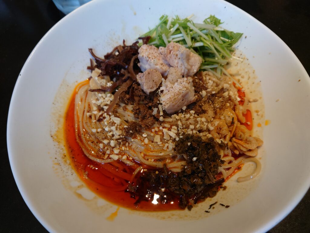 タンタンタイガーで冷やし担々麺を摂取これは汁なしなんやけど汁ありもあるっぽい 麺はフツーのより少し細い普通のに近い感じ 酸っぱいほどではないけど酸味がある酢が効いとるんかな?これのおかげでもうちょい辛くてもイケそうな気がする テイクアウトできんのが残念