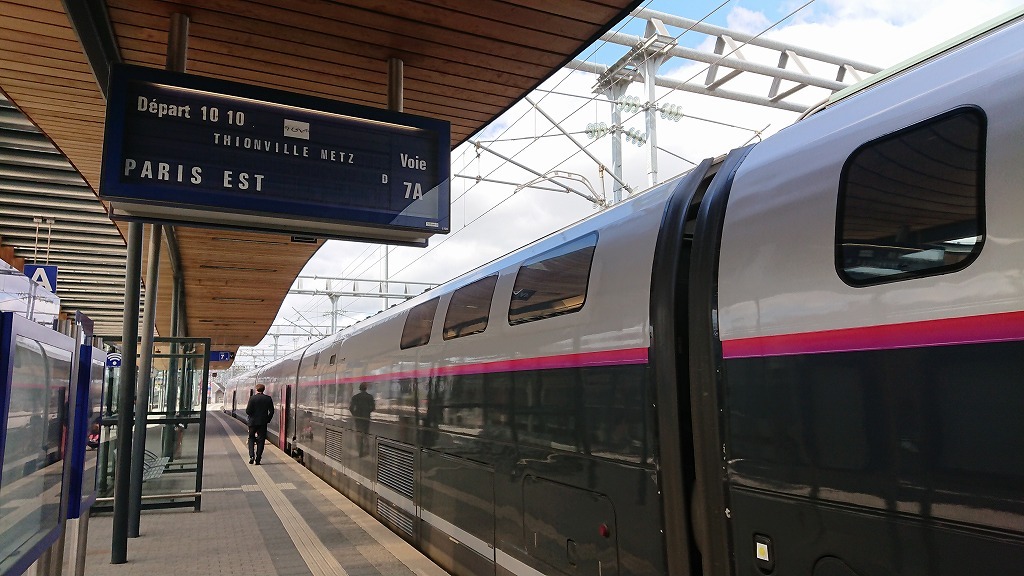 ルクセンブルグ駅からパリ東駅行きのTGVに乗る