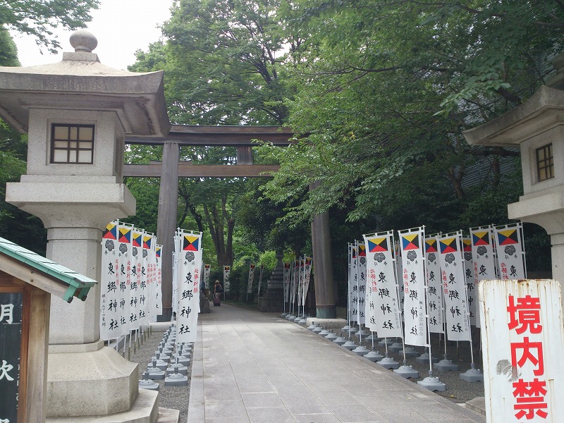 明治神宮に続いて近所の東郷神社へ あっちゃこっちゃにZ旗 ここにお祀りされとるのは「東郷平八郎」東洋のネルソン日本海海戦の英雄ね どーりで参拝したらなんだか強大な敵に圧勝できる気がするよーな 境内では模擬結婚式をしとった ここで結婚式するからにはきっと両家とも「皇国の興廃この一戦にあり!」ぐらいの気構えで望むんやろう