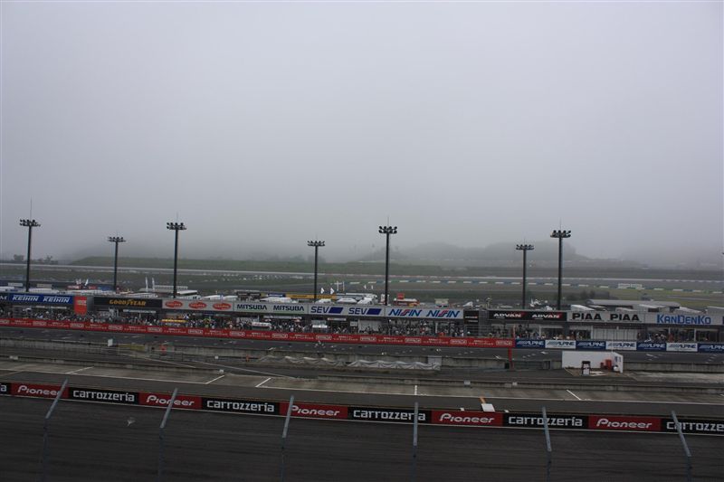 本日のもてぎは小雨が降ったりやんだり。路面は微妙にウェット。