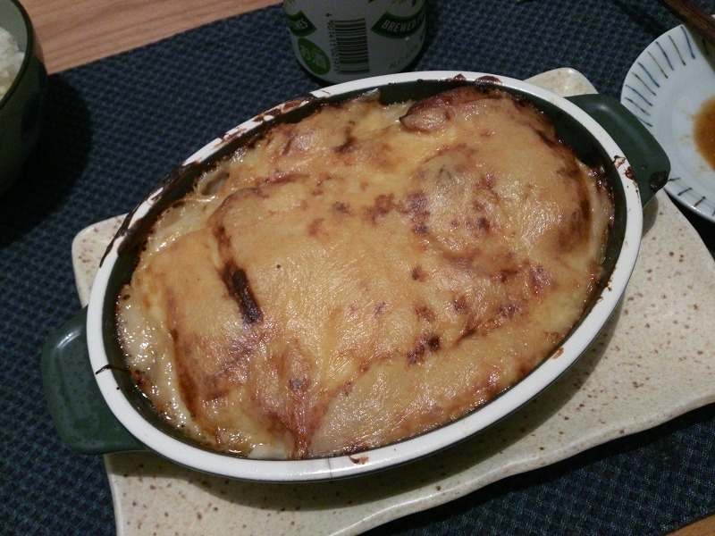 土曜日のこと 前回山梨の友達からもらった大量のじゃがいも 相方の手によって「いもグラタン」に変身 珍しく?相方がレシピに勝手なアレンジを加えなかったおかげでかなり優秀なお味 今後も変な独自アレンジは加えずに書いてあるレシピ通りに作ってもらいたい
