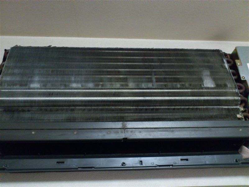 エアコン洗浄液で網?(銀色のラジエターみたいな部分)をシューッ